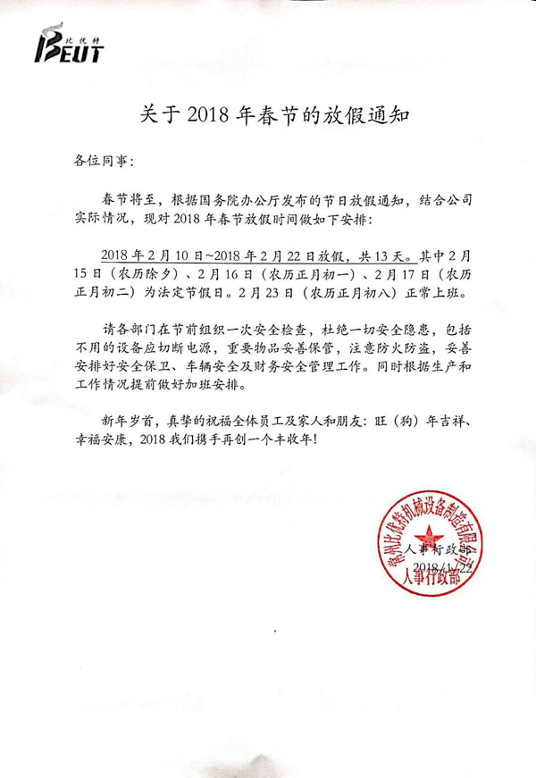 閱讀次數:2812【中國機床商務網欄目 名企在線】神犬續天雞,九州吟雪尤吟歲;新春臨大節,萬眾拜年喜迎新。金雞司晨去歲已逝,忠犬守夜喜迎新年。值此普天同慶、萬眾共賀之際,常州比優特機械設備制造有限公司(以下簡稱“常州比優特”)攜全體員工祝愿機床行業辛勤工作的全體同仁、給予了比優特巨大支持的新老用戶以及合作伙伴在新的一年里一帆風順、萬事如意、闔家團圓、幸福美滿。