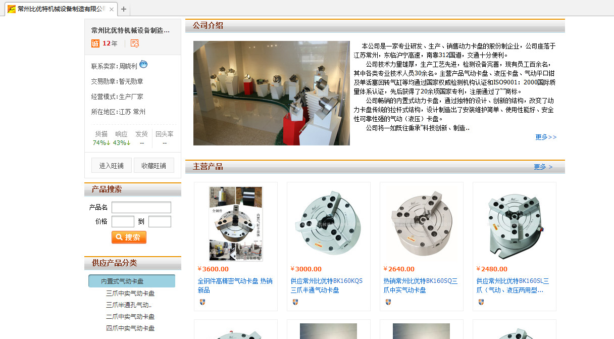 目前,常州比優特已經形成了“重點突出,多點開花”的成熟網絡宣傳模式,公司也憑借良好的企業信譽和過硬的產品實力在業界擁有了自己的品牌形象和穩定客源。現在,常州比優特已經成為一家生產氣動卡盤、液壓卡盤、加工中心組合夾具、前置式通孔卡盤、激光切割設備專用主軸夾座等機械產品的專業技術型企業,特別是卡盤產品,已經形成自己的競爭優勢和品牌效應,在行業內廣受好評。