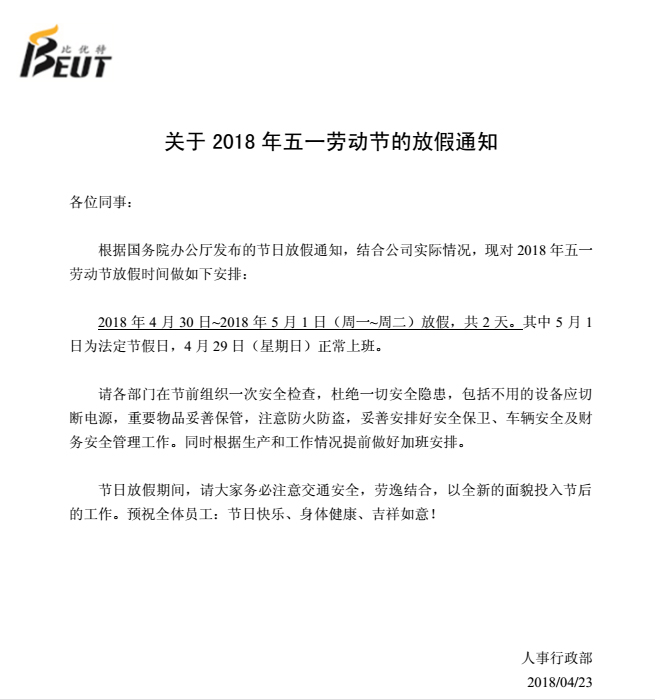 2018年勞動節(jié)放假通知