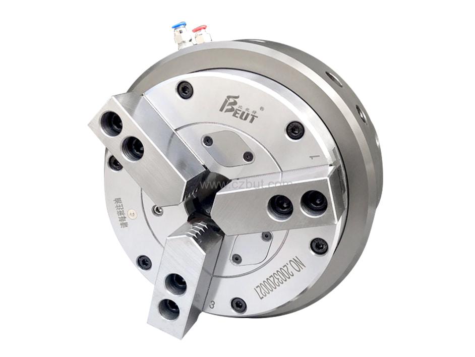 卡盤體本身即為氣缸,內置活塞,通過主軸尾部控制機構實現夾緊與松開動作。卡盤中心為中空,適用于加工較長的棒料。